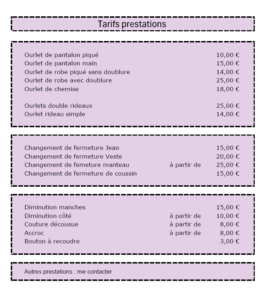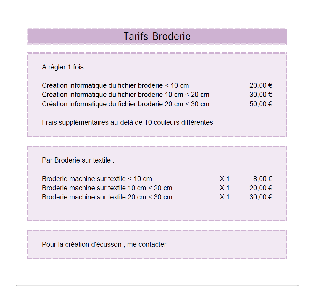 Tarifs Broderie